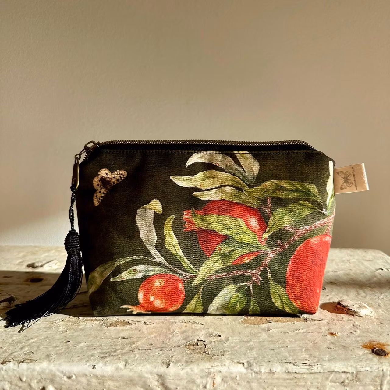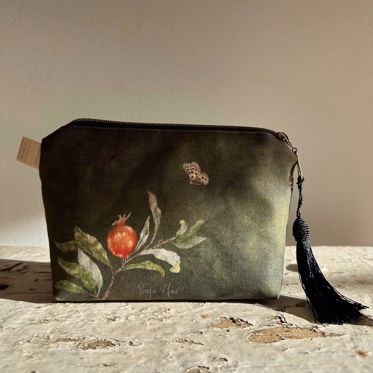 En liten skatt att bära med sig – den här handgjorda necessären förenar funktionalitet med naturromantisk elegans. Perfekt för såväl vardagens små ting som till weekendens äventyr.
